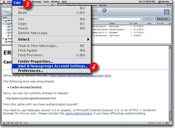 | 4)Select 'Mail & Newsgroups Account Settings...' (This option will only be available if you have opened the Mail and News Group window. If you do not get this option, please go.back to steps 1and 2) |