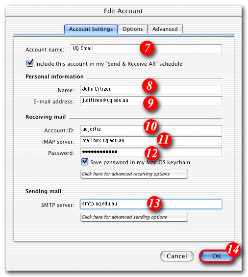 | 8)Enter your name as you would like it to appear in outgoing e-mails. |