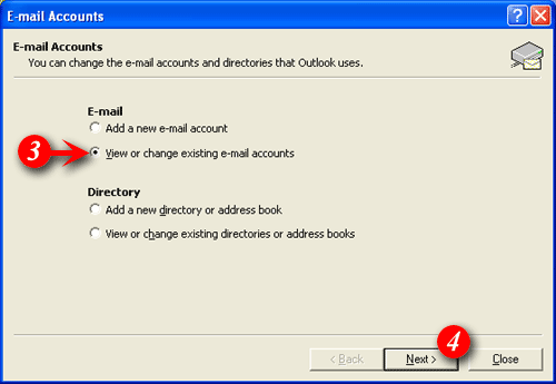 3)Put a dot in the 'View or change existing e-mail accounts' option.